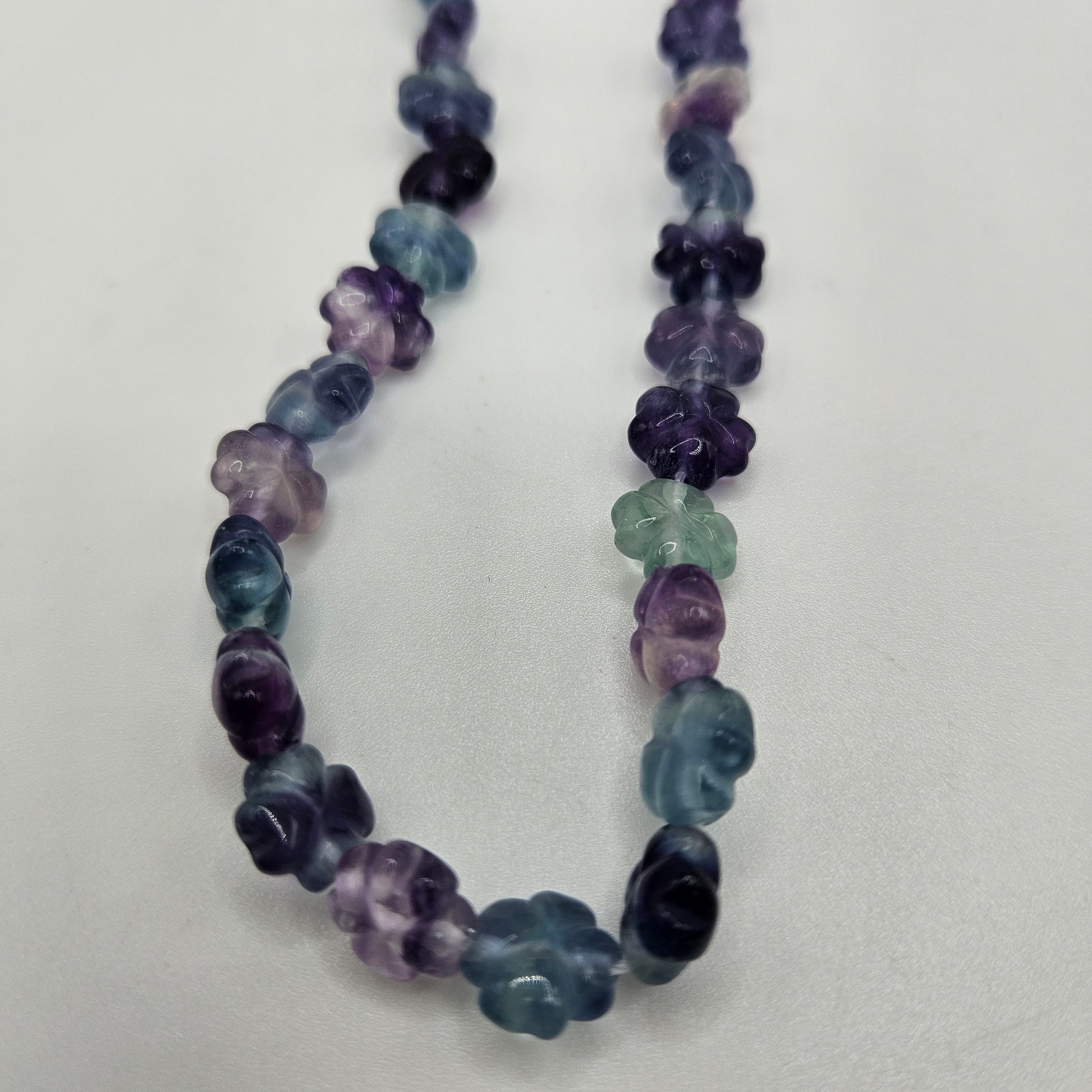 10mm Carved Flower Fluorite Round Bead Strand