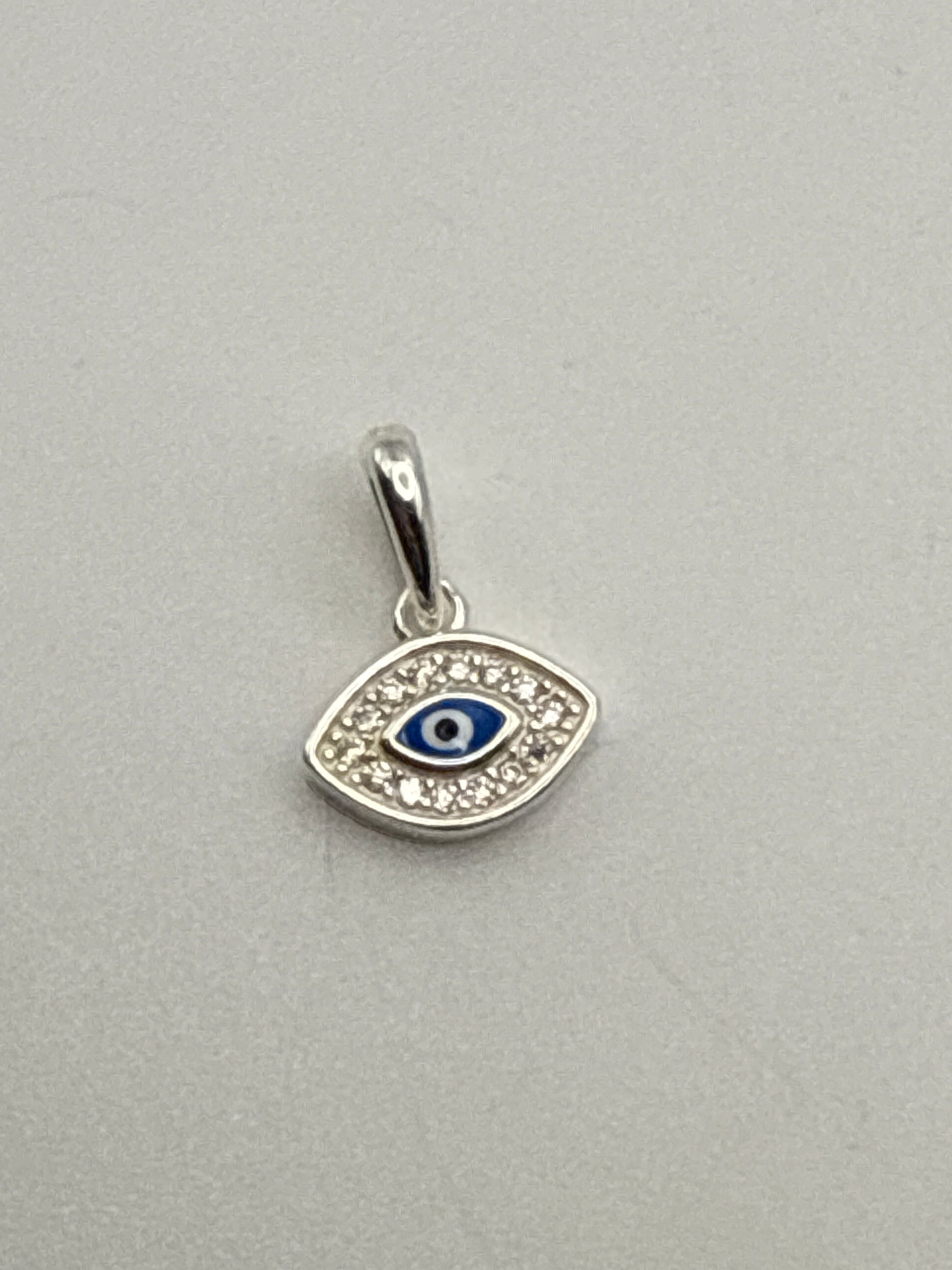Sterling Silver Charm Evil Eye Charm Pave with Mini Blue Evil Eye